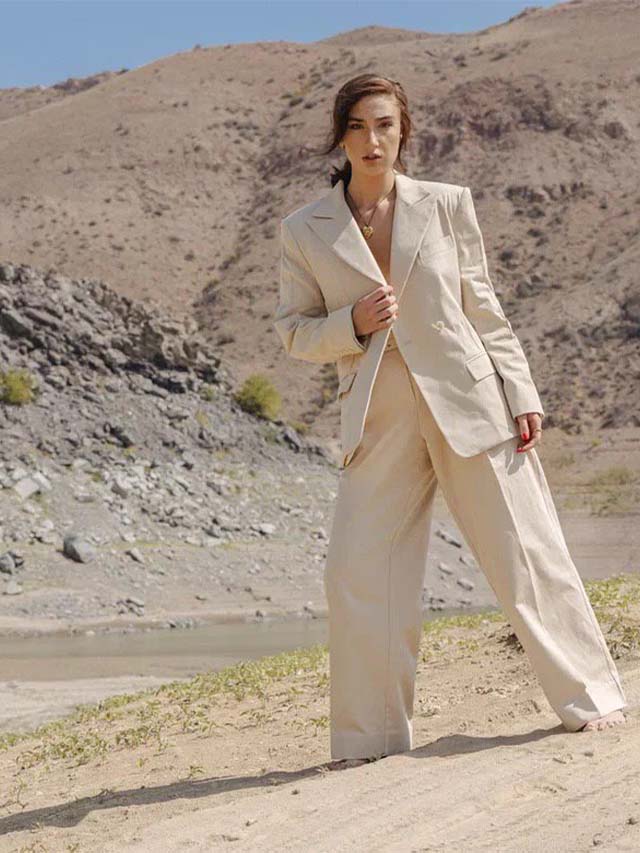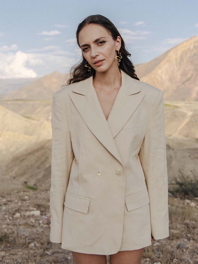 Beige denim blazer
